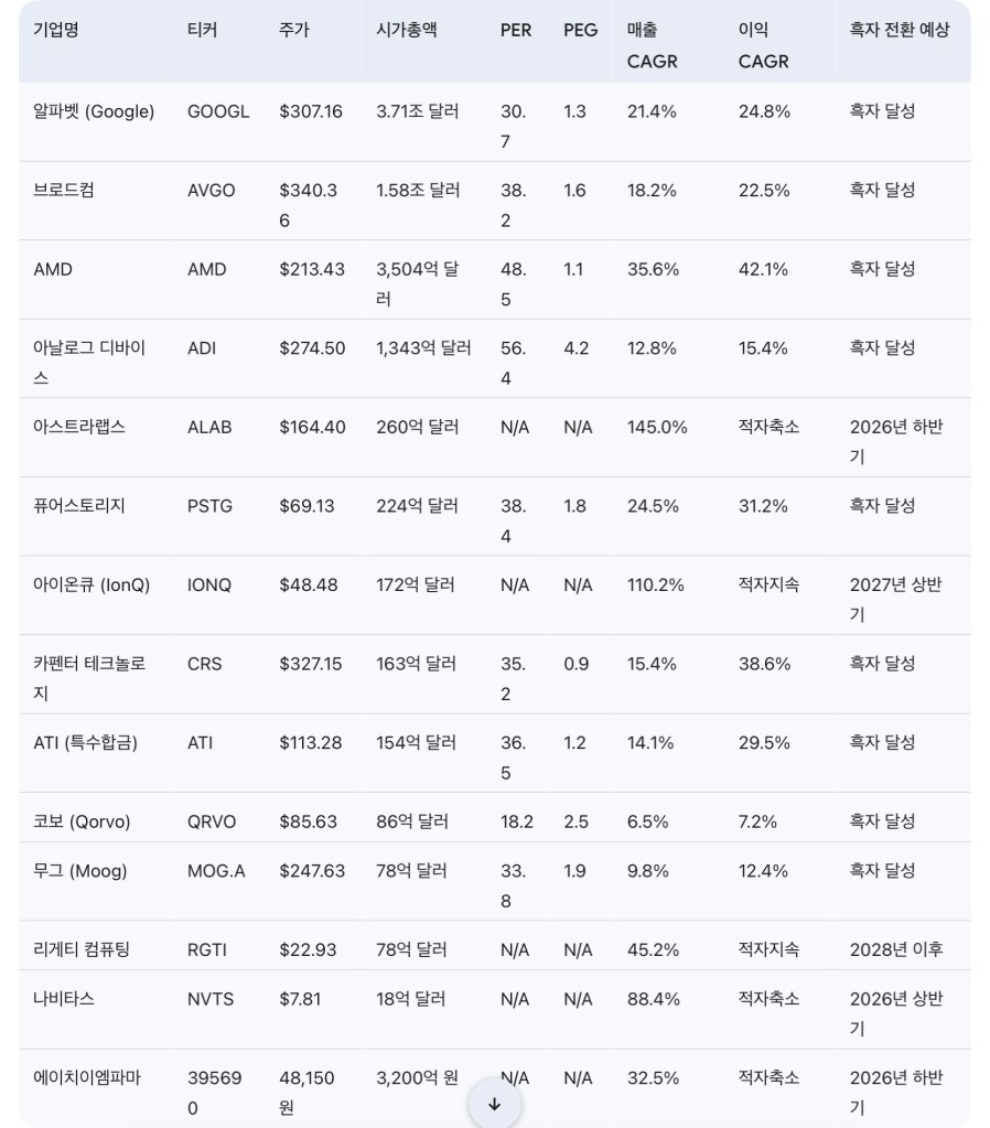 • 위성 통신 부품: * 신호 증폭 및 복원: 코보(Qorvo), 아날로그 디바이스(ADI) [29:21]